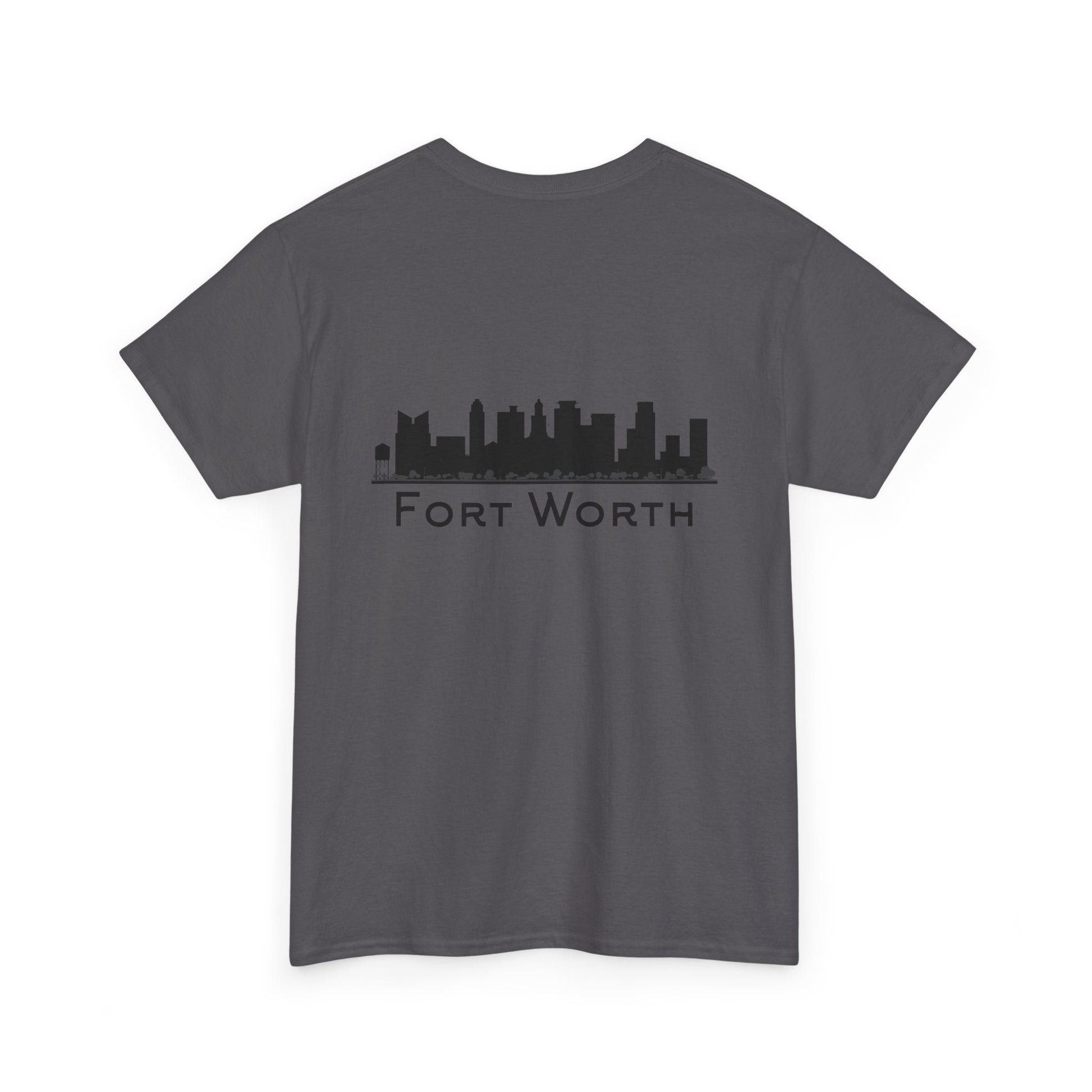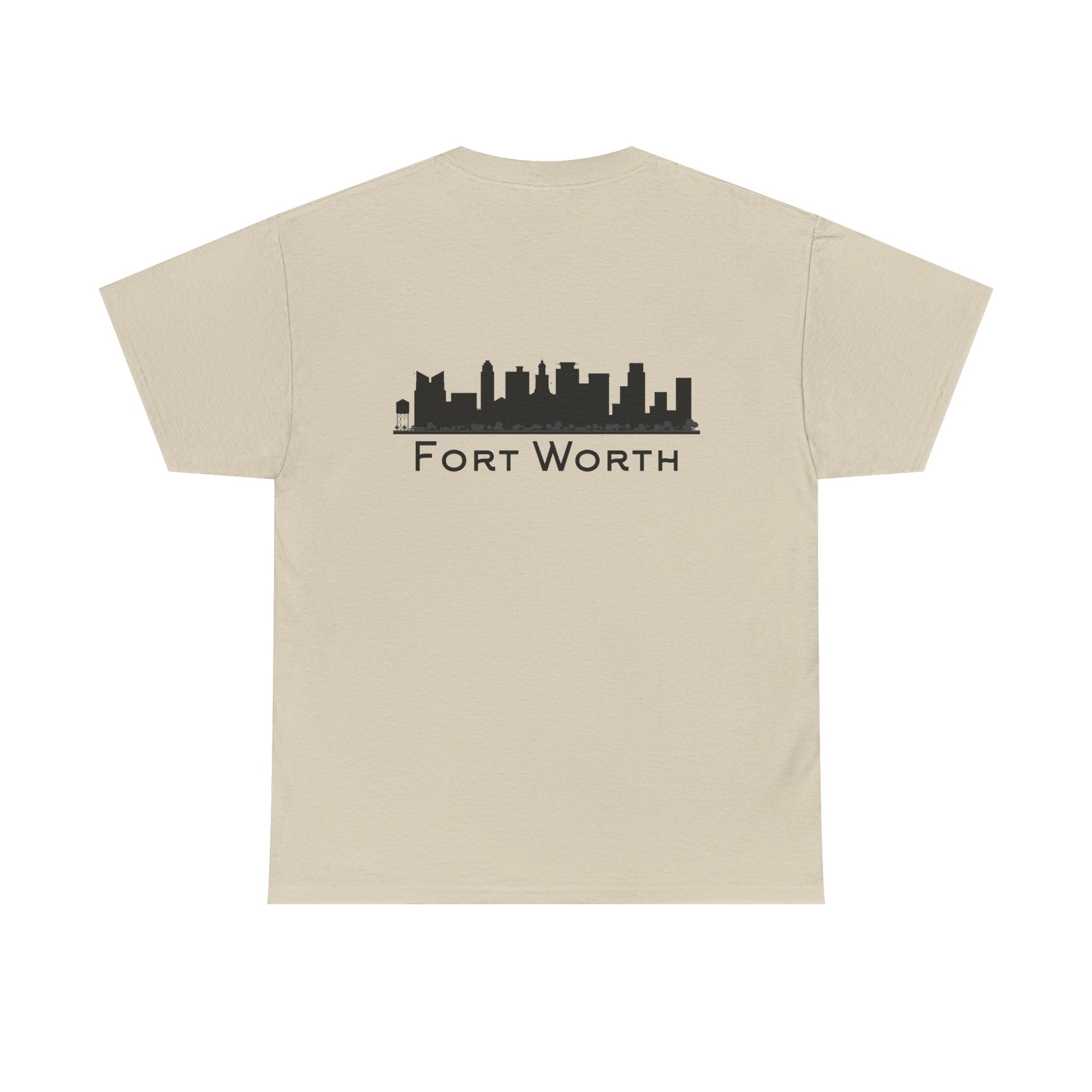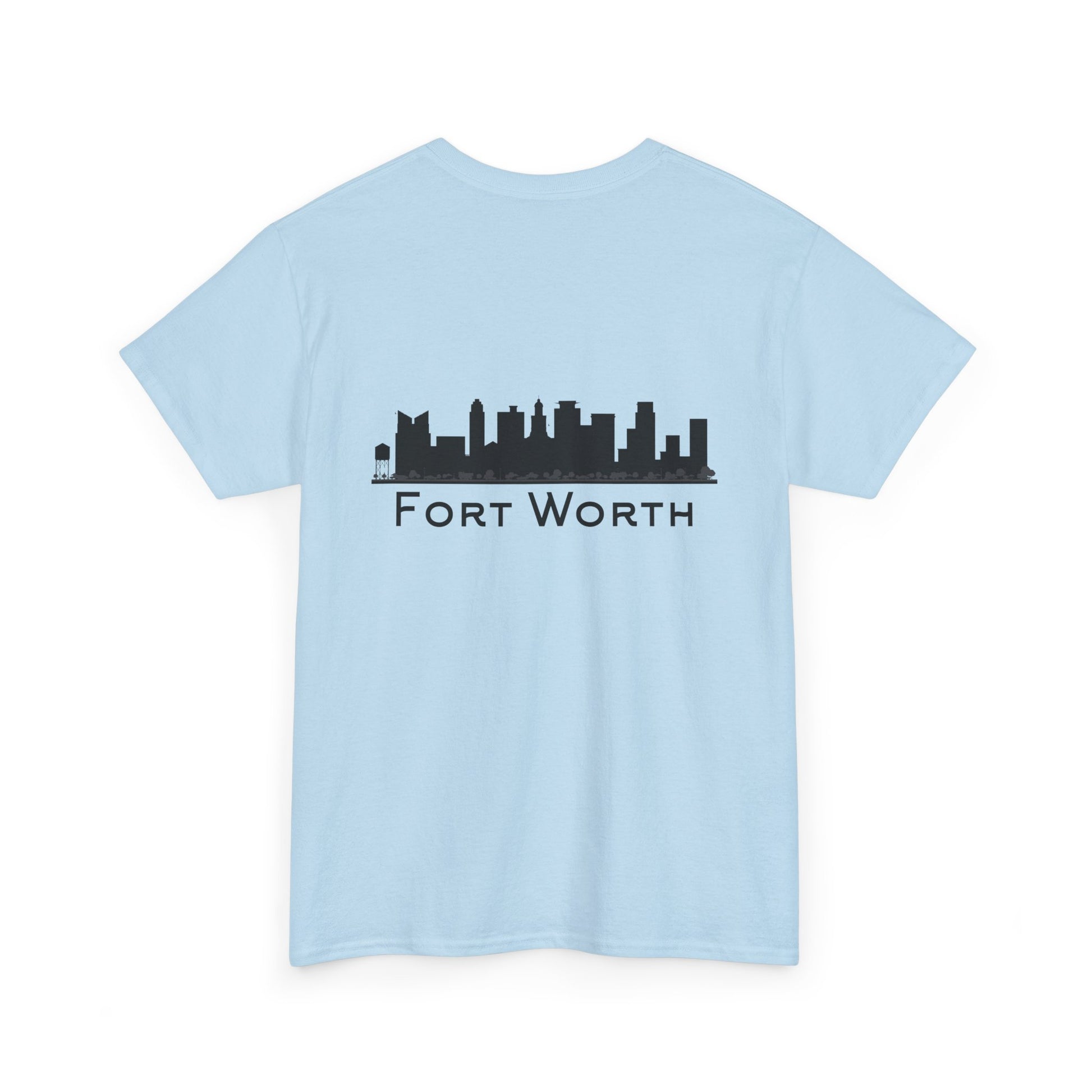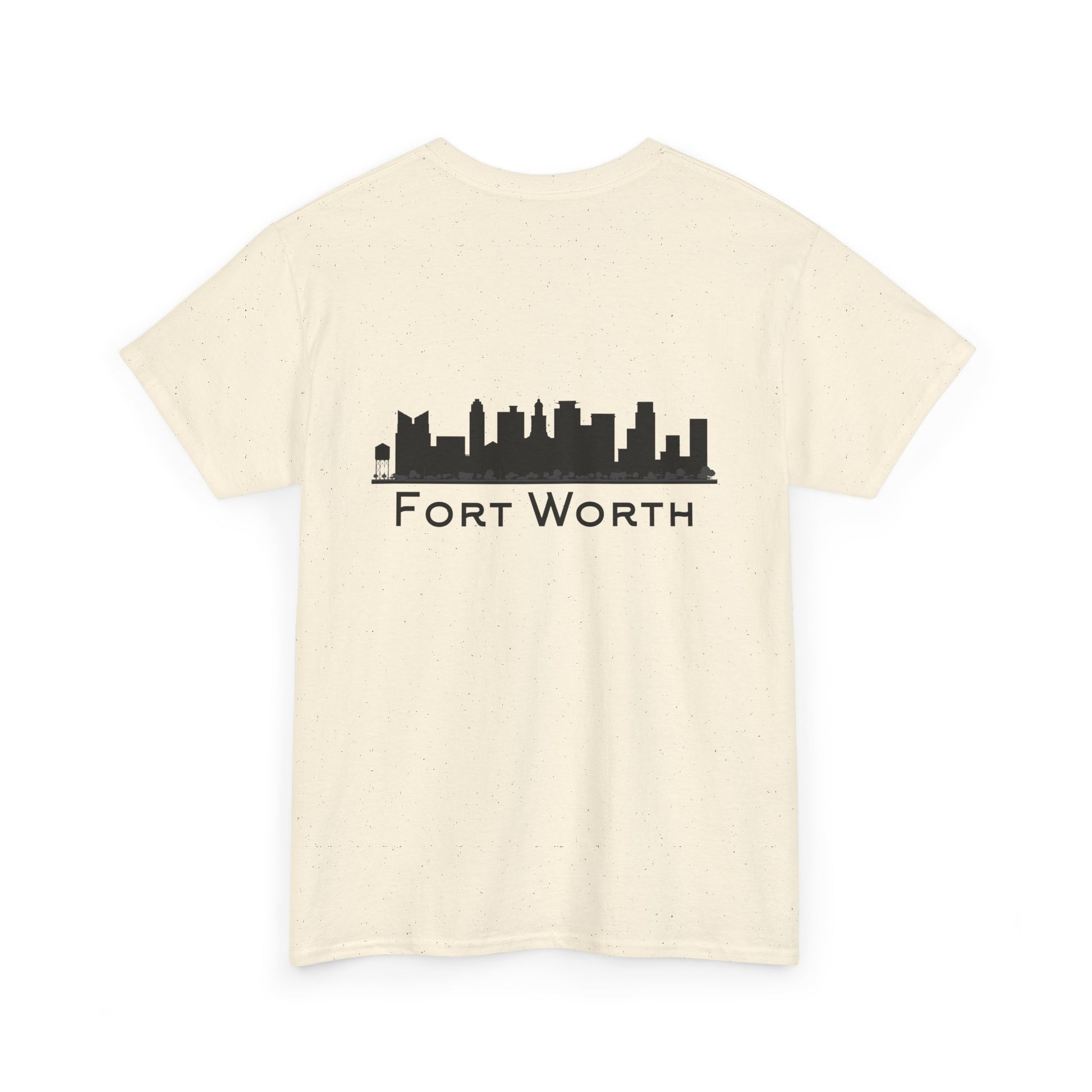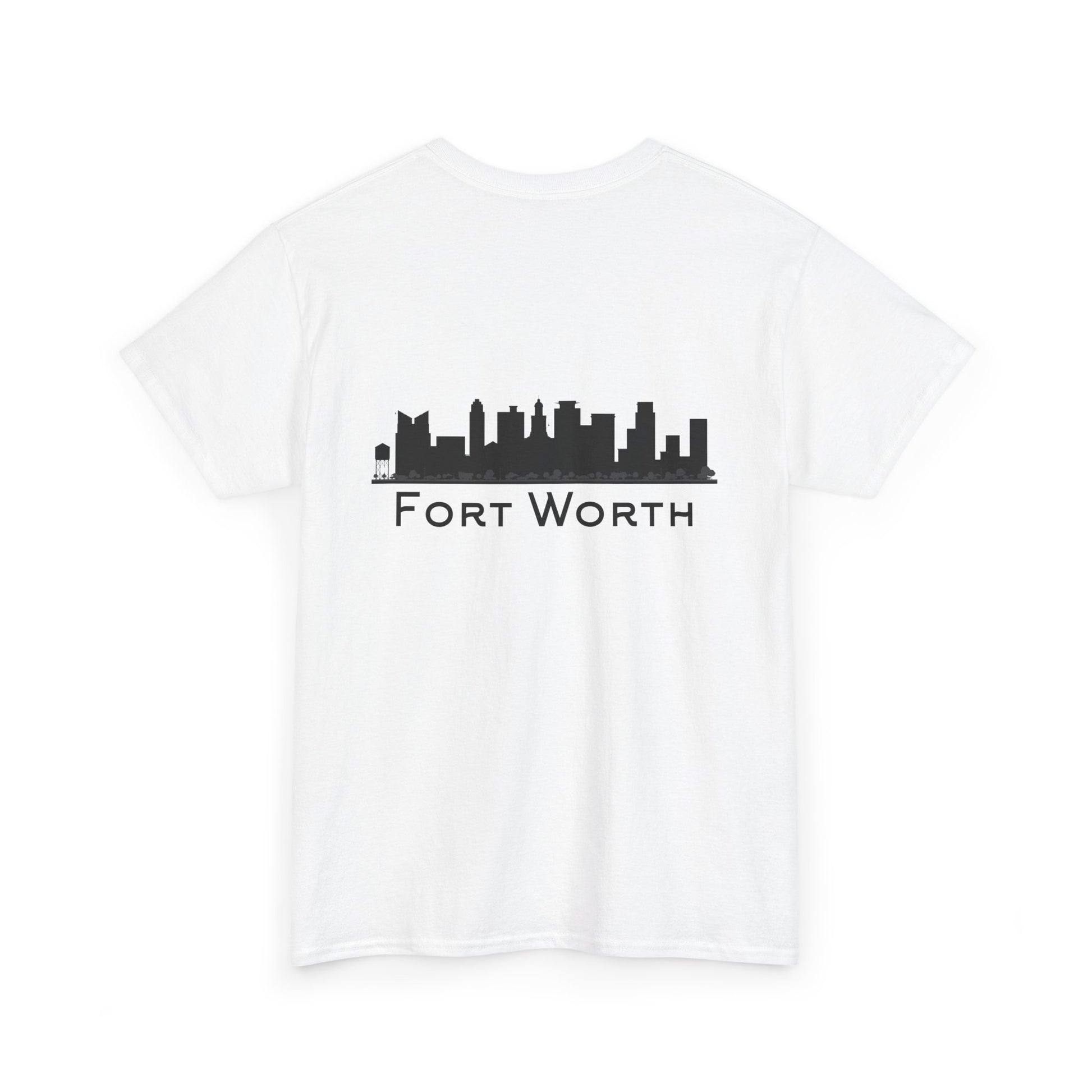 Soft, breathable, and built to wear every day—this classic crew tee quietly celebrates Fort Worth. A small outline of Texas sits over the heart, while the back carries a clean black skyline and the city name in a pared-back type. It feels like a morning walk through a familiar neighborhood: comfortable, steady, and a little proud. The fabric drapes casually but keeps its shape; the tubular knit and taped shoulders mean the silhouette stays neat after many washes. Slip it on for errands, low-key meetups, or a laid-back evening out and let the subtle city graphics do the talking.
