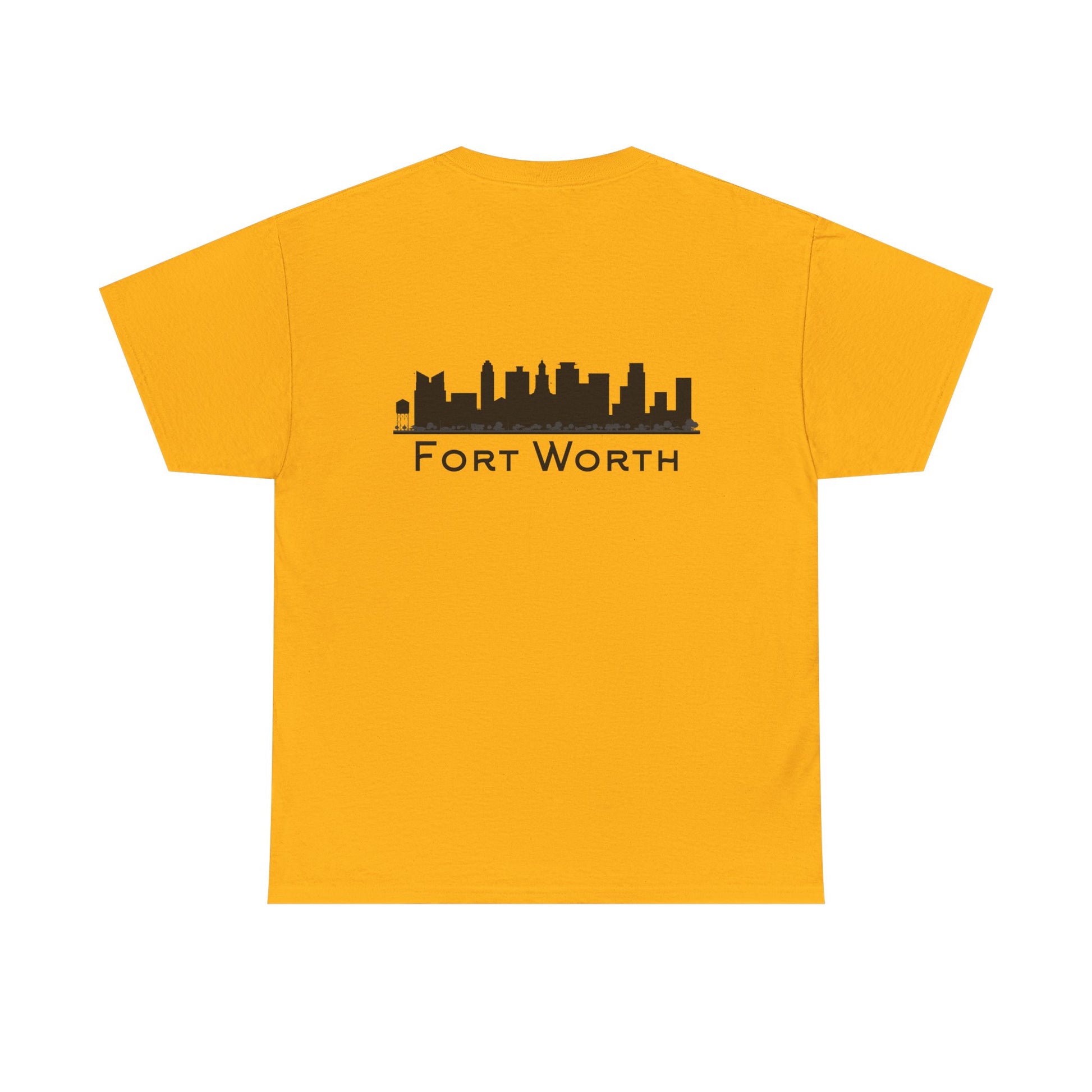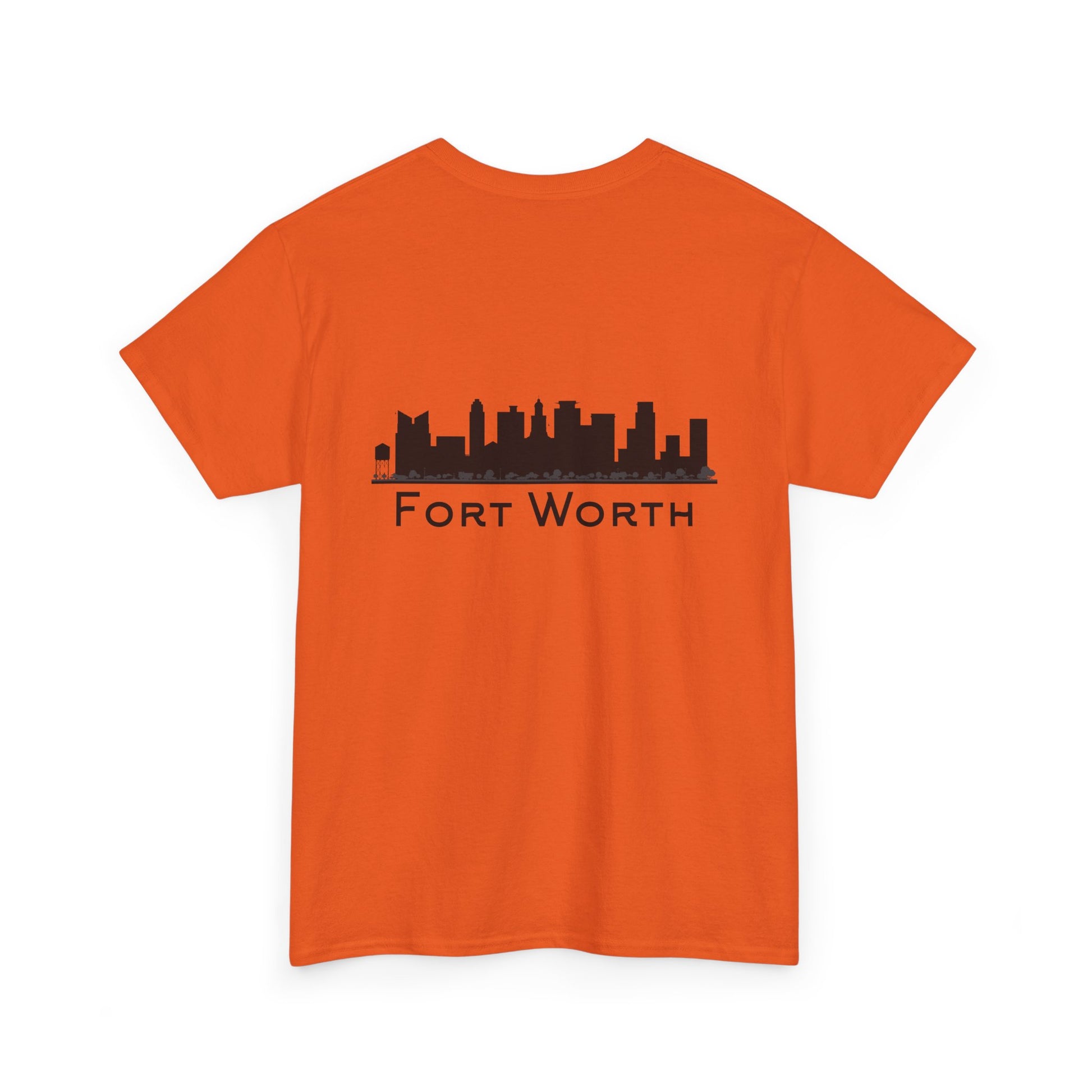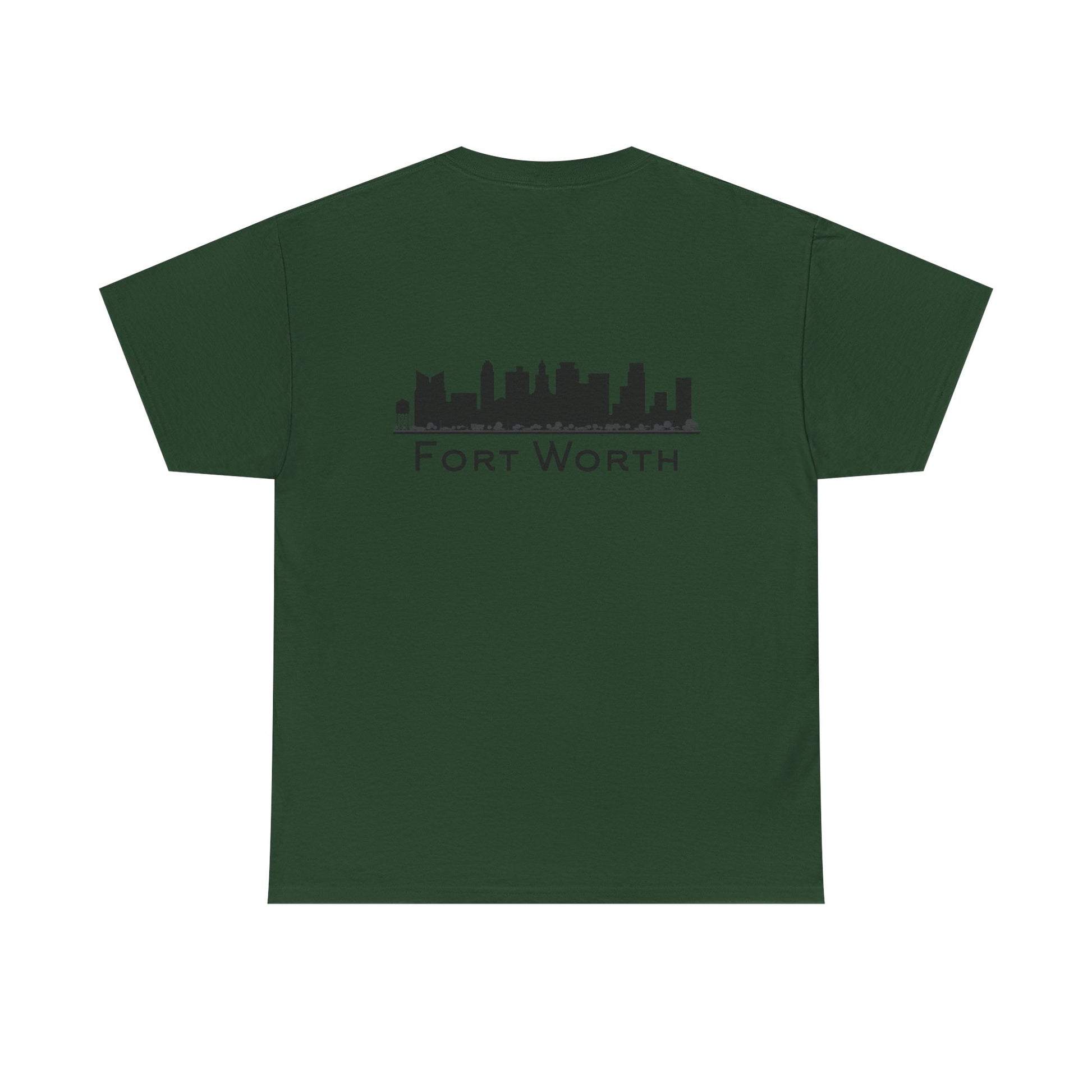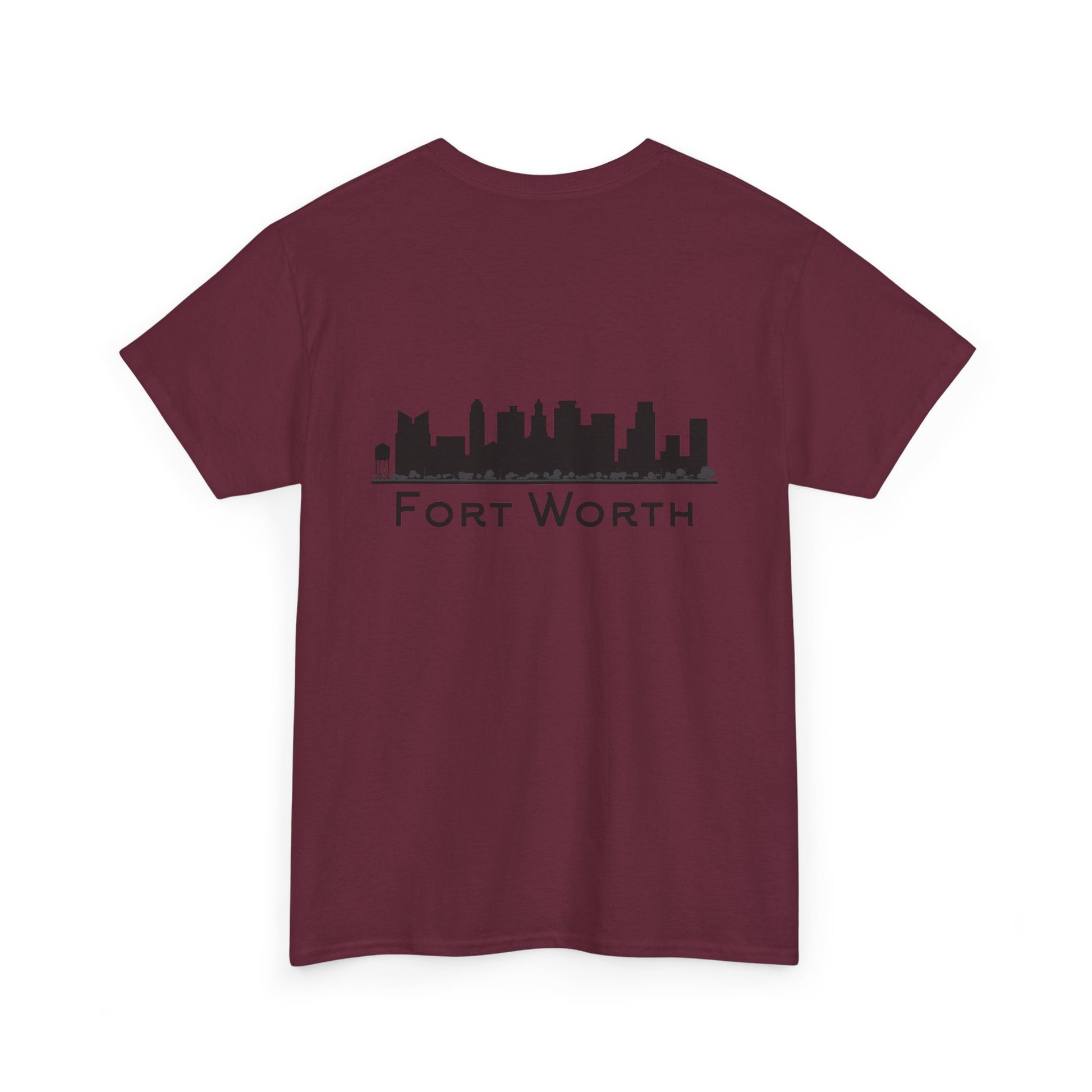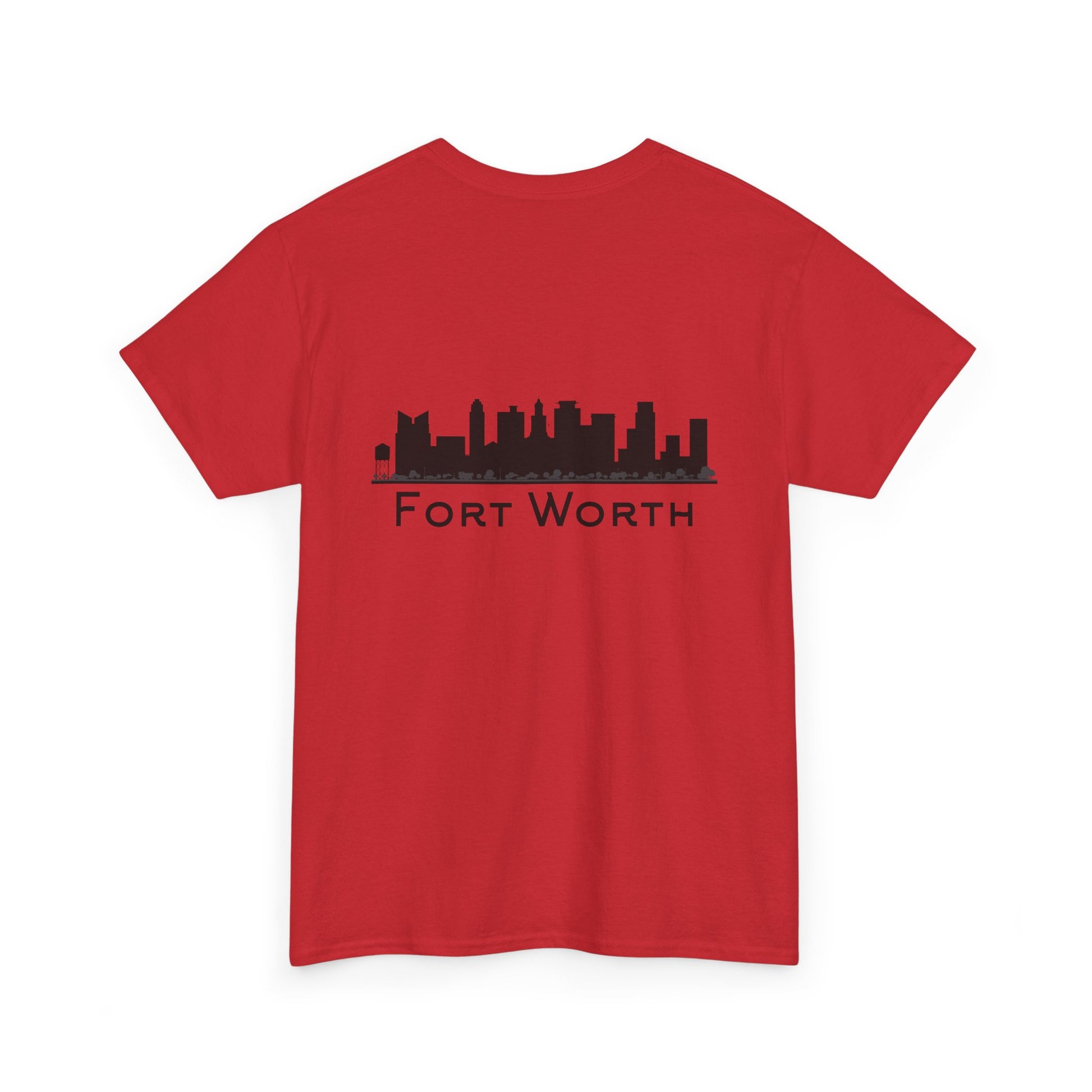 Soft, breathable, and built to wear every day—this classic crew tee quietly celebrates Fort Worth. A small outline of Texas sits over the heart, while the back carries a clean black skyline and the city name in a pared-back type. It feels like a morning walk through a familiar neighborhood: comfortable, steady, and a little proud. The fabric drapes casually but keeps its shape; the tubular knit and taped shoulders mean the silhouette stays neat after many washes. Slip it on for errands, low-key meetups, or a laid-back evening out and let the subtle city graphics do the talking.